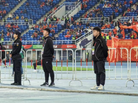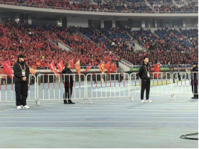 赛场内的学生志愿者,按照组委会工作人员要求👊,快速到位,站立昂首挺胸🤷🏼‍♀️,精神十足,隔离带拉得笔直,有效协助维护了赛场内的采访秩序🤹🏼。