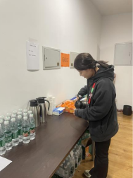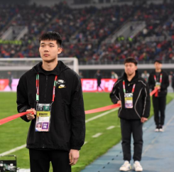 体职院的30名志愿者按照岗位分成两组,一组在赛场内拉隔离带、维护赛场采访秩序,一组在新闻发布厅、媒体看台区、混合采访区🪭、餐饮区负责首发名单的接收与传递、储物柜管理👩🏽‍🍼、设备检查🏝、秩序引导、收发物资、机动协调等工作。