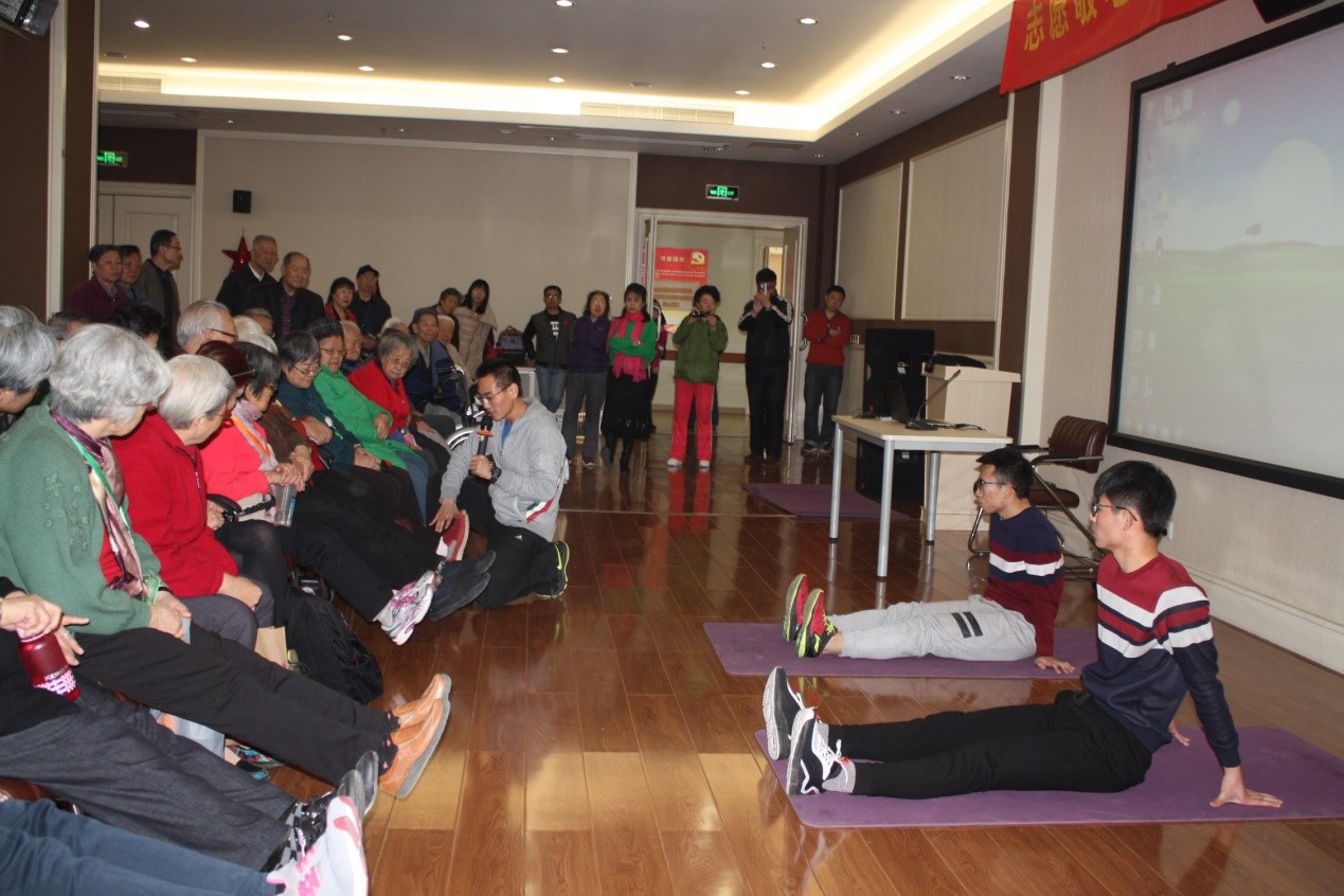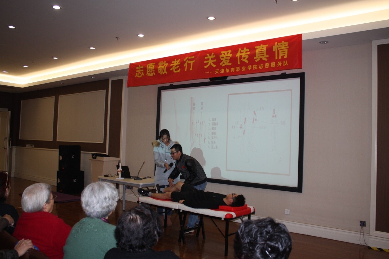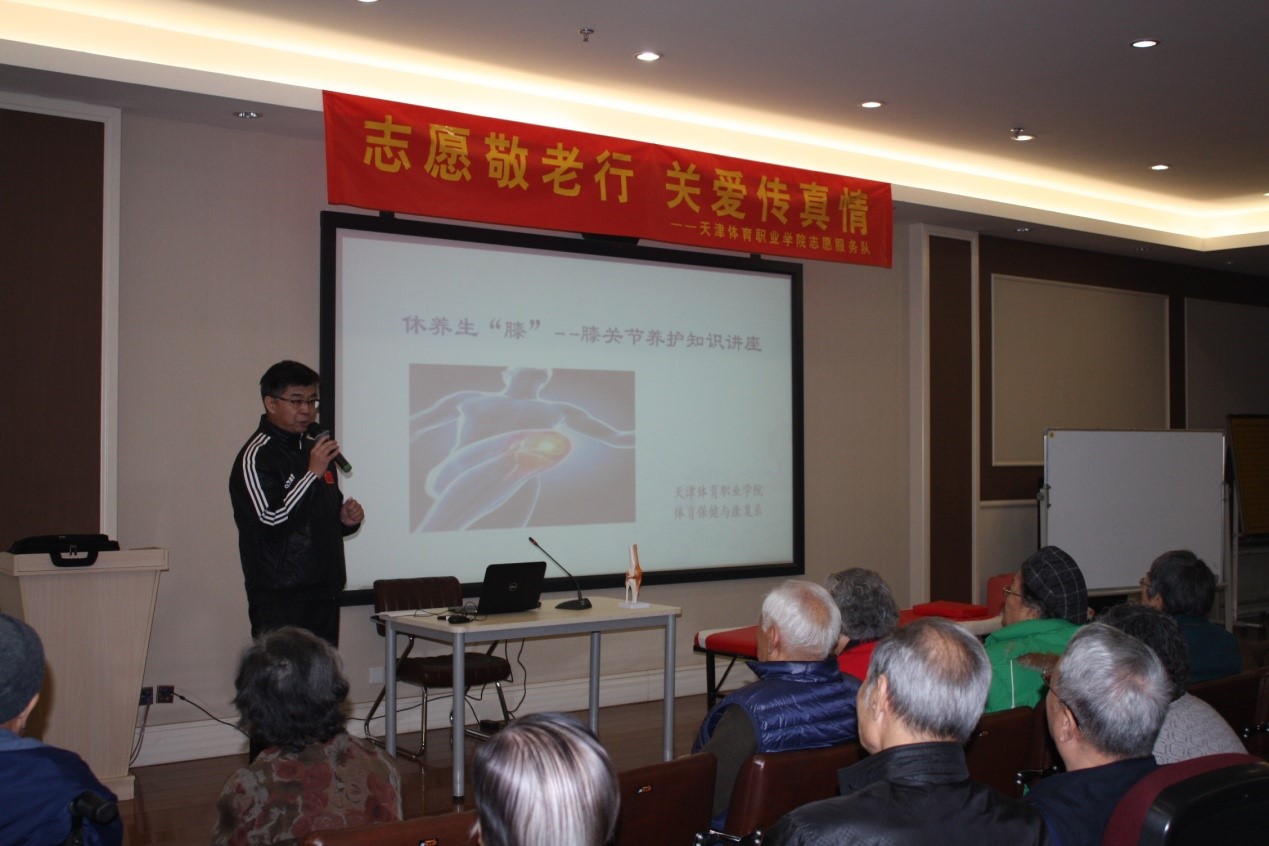 12月3日上午,按照天津市第十一届社区教育展示周,暨2017年天津市全民终身学习活动周的工作要求👨🏿💻,学院领导高度重视,亲自带队并部署工作👨🏽🍼🤙,经办公室组织协调,体育保健与康复系的师生到位于静海区的康宁津园老年公寓举办《休养生“膝”——老年人膝关节养护知识》主题讲座🧜🏽♂️,为老年人讲解关于膝关节养护知识,带领他们实践操作并解答健康难题。