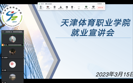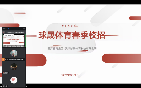 为做好我院2023届毕业生就业服务工作,构建毕业生与企业的交流平台⛹🏽‍♀️。315上午我院特邀天津球晟体育科技有限公司、卡尔斯(天津)体育俱乐部有限公司、天津市豪邦篮球俱乐部是三家企业负责人在腾讯会议平台为2023届毕业生进行线上宣讲。