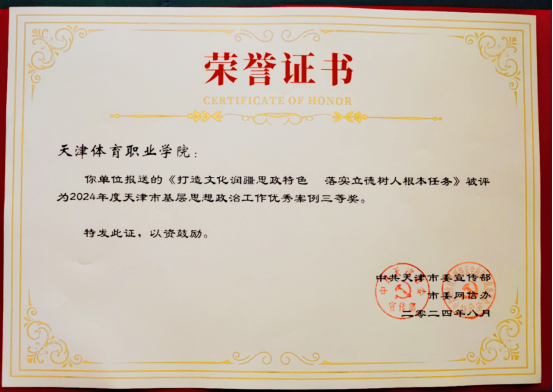 由天津市委宣传部、市委网信办主办的2024年天津市基层思想政治工作优秀案例展示活动评审结果已于近日揭晓。经前期天津市体育局遴选推荐,我院思想政治工作案例《打造文化润疆思政特色 落实立德树人根本任务》最终成功入选2024年天津市基层思想政治工作优秀案例并荣获三等奖🫅🏿。