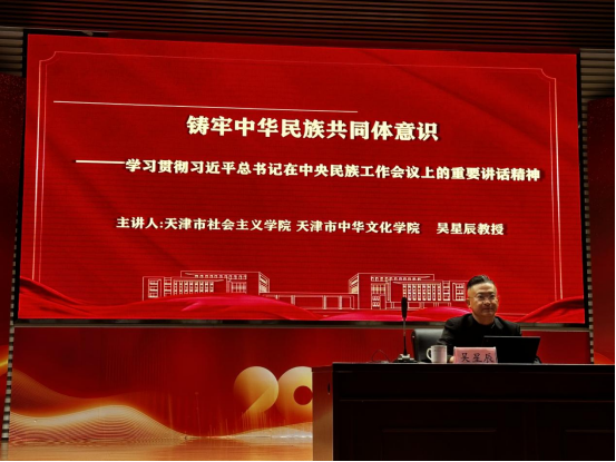 为深入学习贯彻党的二十届三中全会精神,深刻领会习近平总书记关于加强和改进民族工作的重要思想,贯彻落实习近平总书记关于铸牢中华民族共同体意识的重要论述👱‍♂️,引导广大师生牢固树立中华民族共同体理念🫖,促进各民族交往交流交融,建设中华民族共有精神家园。11月13日下午👰🏼,我院邀请天津市社会主义学院 天津市中华文化学院吴星辰教授作铸牢中华民族共同体意识专题培训🕦。学院领导班子、教职工代表、少数民族学生及2024级学生代表参加专题培训。