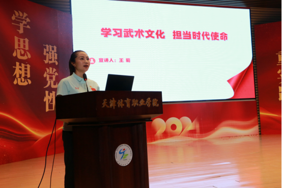 报告分享阶段🧙🏻♀️,体职院2021级学生牛宗帅、体武射高级教练员王菊和霍元甲第五代传人👦🏻、天津体育学院教授霍静虹分别以《以热爱 点燃梦想》《学习武术文化 担当时代使命》和《精武元祖 以武报国》为题作报告,他们从学生、教练员、专家的不同身份👰🏼🌔,以感人肺腑的学习实习、工作实践经历,从不同角度分享了对中华传统文化——武术的热爱和传承🏋️🍩,带领大家领略武术的博大精深,感受武术文化的独特魅力🤷🏽♂️,讲述了天津体育故事,引导学生充分感受天津的文化特色和精神气质,激发热爱天津👏、建设天津★、扎根天津的热情,自觉做体育发展的推动者◾️、天津文化的传承者,在体育故事中享受乐趣、健全人格💪🏻、锤炼意志。