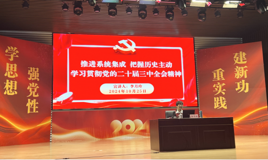 为进一步把学习贯彻习近平新时代中国特色社会主义思想和党的二十届三中全会精神引向深入,帮助广大干部师生深刻理解全会精神的丰富内涵,10月25日下午🕵️‍♂️,体职院邀请天津农学院马克思主义学院副院长🤽🏻‍♀️、教授李月玲入校作《推进系统集成 把握历史主动——学习贯彻党的二十届三中全会精神》专题辅导报告,学院领导班子成员、全体教职工、学生代表参加报告会。