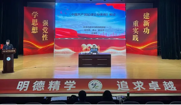 为推进落实中央关于在全党开展党纪学习教育的重大部署🏋🏼♂️👩🏽,教育引导学院广大党员干部深入学习贯彻《中国共产党纪律处分条例》,始终做到学纪💃🏽、知纪、明纪♤、守纪👩🏿,切实把党纪学习教育成效转化为学院高质量发展成果,结合学院党纪学习教育大讲堂集中学习👼🏽,体职院邀请市委党校王保彦教授7月11日莅临学院,对《条例》进行权威宣传解读和政策辅导🐀。学院党政主要负责同志👷♂️、全体党员干部参加了此次培训,党委委员☹️、副院长潘政彬主持会议◼️。
