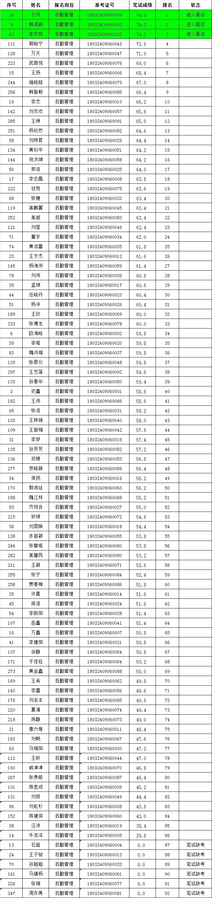 2018年彩神iv公开招聘进入笔试人员名单