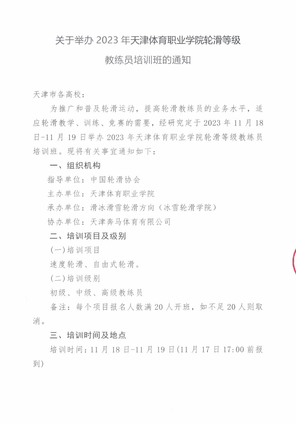 关于举办2023年彩神iv轮滑等级教练员培训班的通知